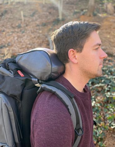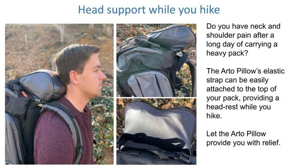 An ergonomically designed memory foam pillow. A pillow that is compact, lightweight, and durable. Perfect for camping, hiking, picnics, airplanes, long drives, or for anything else that you need compact comfort.